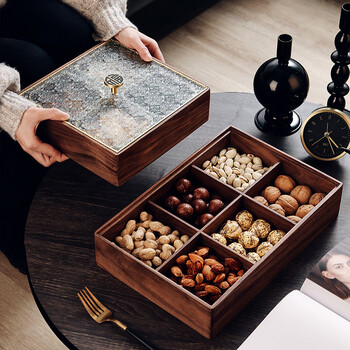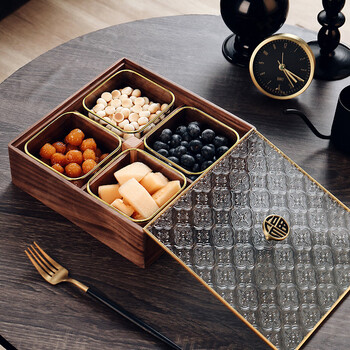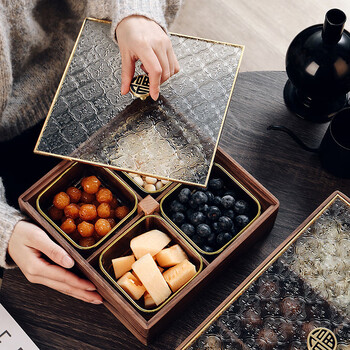 格娜斯 干果盘新中式高端坚果盘客厅茶几家用零食摆放糖果收纳盒轻奢4分格