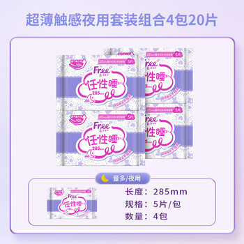 FREE京东自营卫生巾热门夜用组合 姨妈巾套装亲肤超薄棉柔285mm*20片