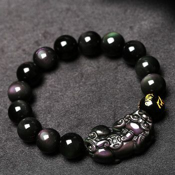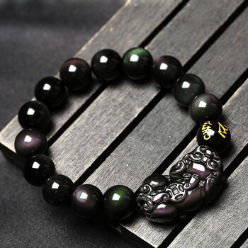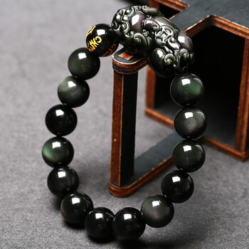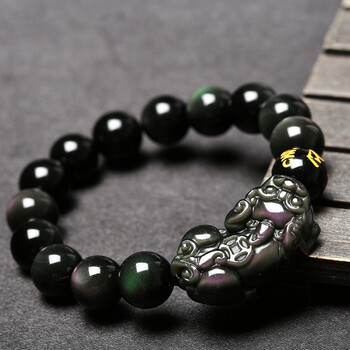 慈灵阁彩虹眼黑曜石貔貅手链饰品貔恘皮丘手串男女同款黑色12mm