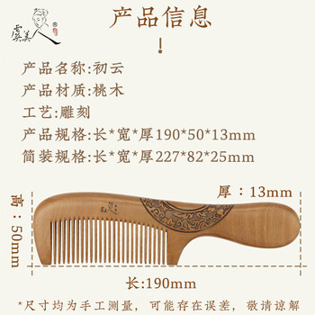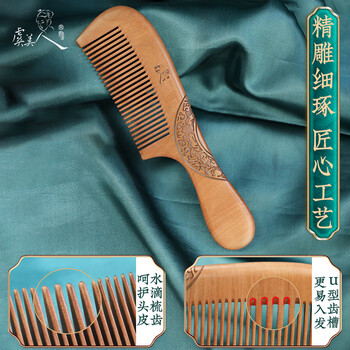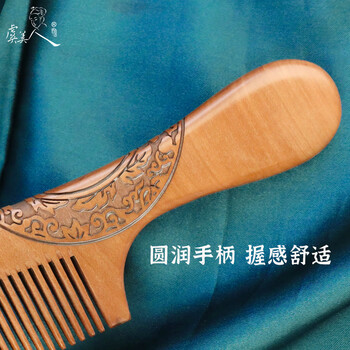 虞美人梳子天然桃木梳子女生日礼物整木梳子女韶华简装