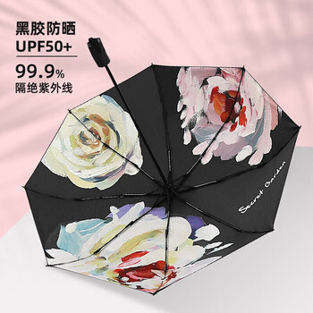 C'mon防晒太阳伞三折晴雨伞遮阳伞女防紫外线upf50+ 油画花影三折伞