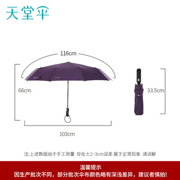 天堂 全自动雨伞三折 10骨加固一键开收易甩干简约晴雨伞 紫兰