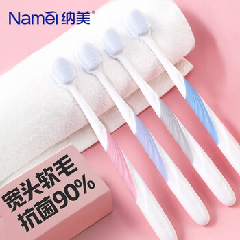 纳美(Namei)纳米抗菌软胶毛中宽头牙刷 速刷洁净 软毛呵护牙龈成人4支家庭装