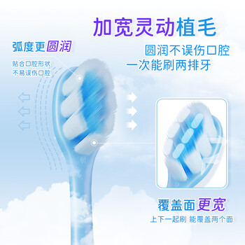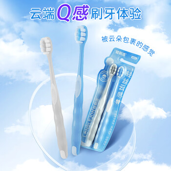朗利洁轻丝云感成人软毛牙刷加宽灵动植毛弧形刷柄防滑软胶情侣款2支装