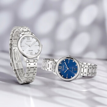 西铁城(CITIZEN)手表女日韩表光动能白色表盘钢带时尚送送女友礼物EM0500-73A