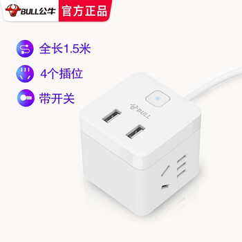 公牛(BULL)GN-UUB122 小魔方usb1.5米2个USB接口+2插孔 创意多功能智能无线转换器手机充电小排插多孔