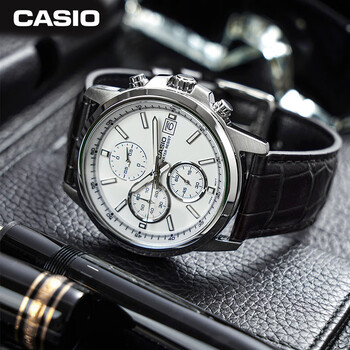 卡西欧(CASIO)手表男三盘简约夜光显示学生考试石英表送男友礼物MTH-5001L-7A