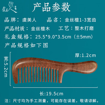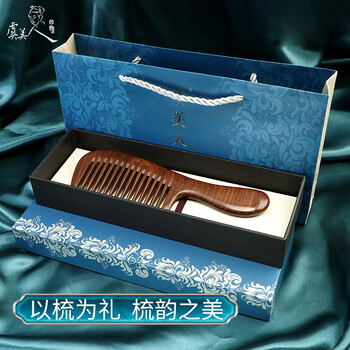 虞美人梳子金丝檀木梳子宽齿梳子女礼盒送女友1-3x