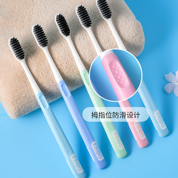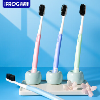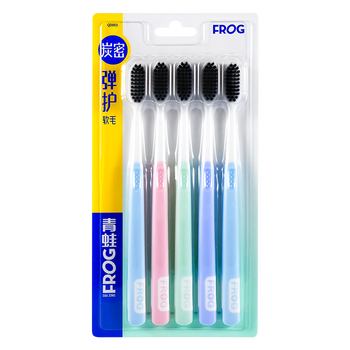 青蛙(FROG)套装系列炭丝成人牙刷5支装 细纤软毛炭黑刷丝家庭装