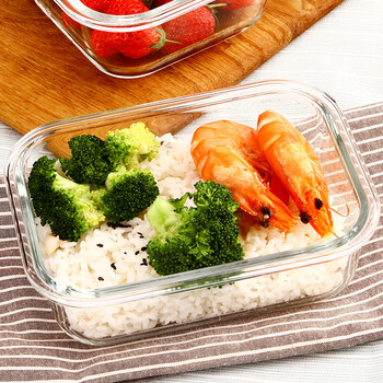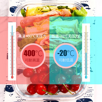 德玛斯耐热玻璃保鲜盒微波炉饭盒上班族学生便当饭盒 北欧绿700ml*2+包