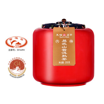 天福茗茶普洱茶 易武山云南陈年普洱熟茶250g瓷罐礼盒装茶叶送礼