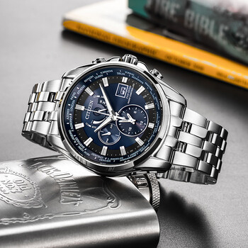 西铁城(CITIZEN)手表男日韩表光动能电波日显表盘钢带商务送男友礼物AT9031-52L