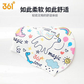 361°儿童泳帽男童女童舒适不勒头可爱卡通硅胶专业护耳防水硅胶游泳帽