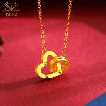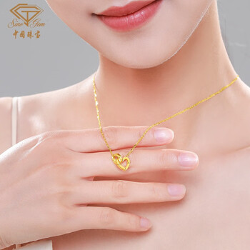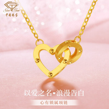 中国珠宝黄金项链女999足金心有锁属莫比乌斯项链生日礼物送女友