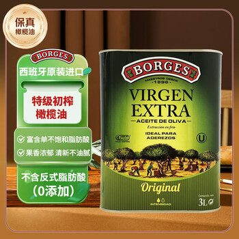 伯爵(BORGES)【保真橄榄油】西班牙进口 特级初榨橄榄油3L铁听 食用油团购送礼