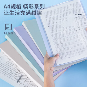 得力(deli)72673 简约畅彩A4透明多页试卷夹档案文件夹插页袋40页资料册文件收纳册学生办公 颜色随机 12本装