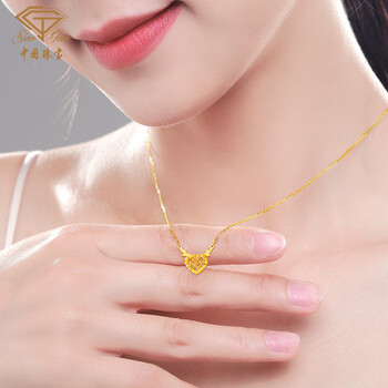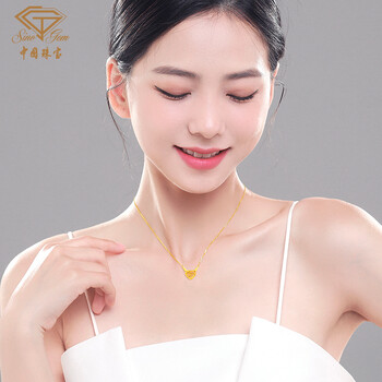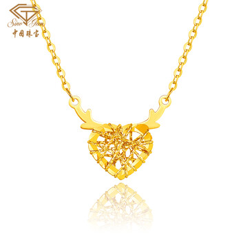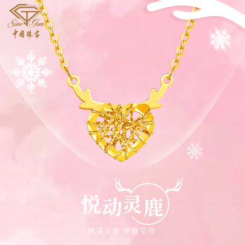 中国珠宝生日礼物送女友黄金项链女999足金一鹿有你项链套链吊坠