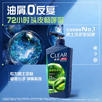 清扬(CLEAR)男士去屑洗发露清爽控油型500gx1
