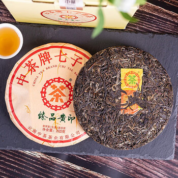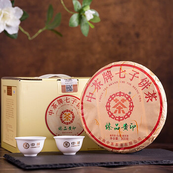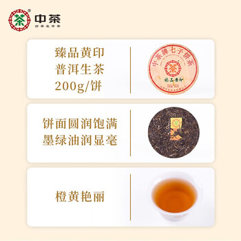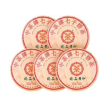 中茶普洱茶 生茶 七子饼茶臻品黄印200g*5 中华老字号