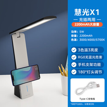 美的(Midea)LED折叠充电台灯书桌学习阅读灯充插两用家用移动台灯