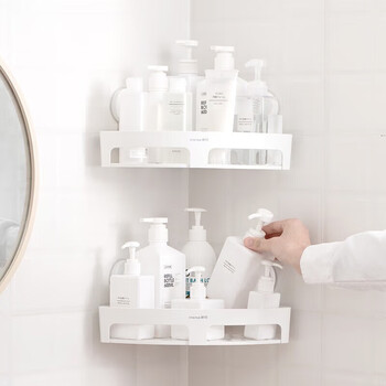 茶花卫生间置物架 浴室免打孔洗漱牙杯架 壁挂收纳架三角 白色 1只装