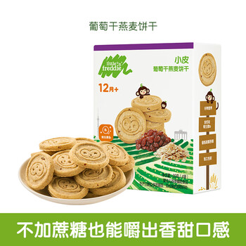 小皮(Little Freddie)全谷物燕麦葡萄干饼干宝宝婴儿零食磨牙饼干儿童零食80g 1岁+
