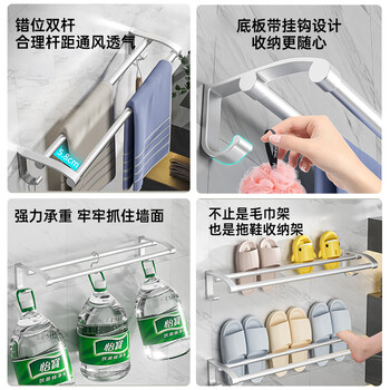 百字毛巾架免打孔毛巾杆加厚太空铝浴巾架卫生间浴室置物架