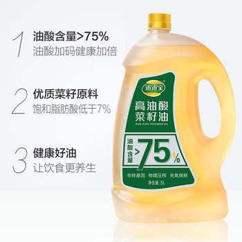 道道全菜籽油 食用油 高油酸菜籽油 油酸含量大于75% 5L*1桶