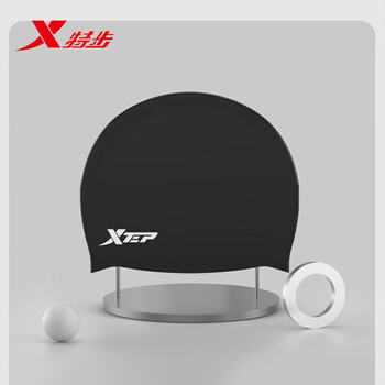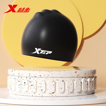 特步(XTEP)硅胶泳帽男女舒适防水成人游泳帽纯色高弹专业训练游泳装备 黑色