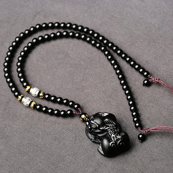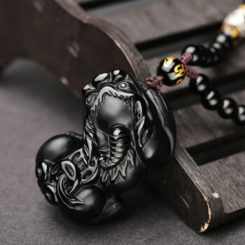 慈灵阁黑曜石吊坠黑耀石貔貅霸王皮丘饰品挂件项链护身符礼物男士男生