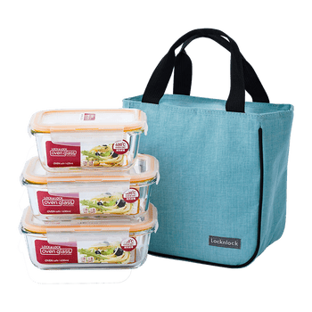 乐扣乐扣(LOCK&LOCK)耐热玻璃保鲜盒微波炉饭盒上班学生便当盒水果餐盒配便当包三件套