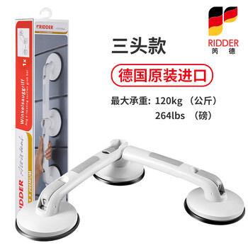 RIDDER德国进口卫生间安全扶手浴室老人扶手3头L型真空吸盘扶手白色60cm