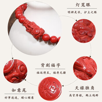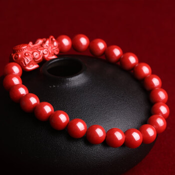 珠宝首饰---水晶/玛瑙/朱砂---手镯/手链/脚链石玥珠宝(SHIYUEZHUBAO)高含量帝王砂朱砂貔貅手串8mm