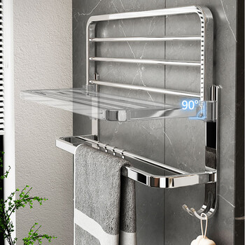 尚美德304不锈钢毛巾架免打孔卫生间置物架毛巾杆浴巾架浴室置物架挂件