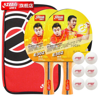 红双喜(DHS)对拍三星级乒乓球拍横对拍套装E302/H3002随机发(附乒乓球)