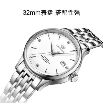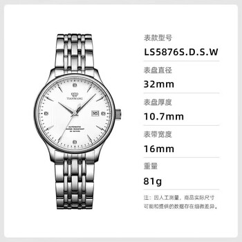 天王(TIAN WANG)手表女士 生日礼物昆仑系列钢带机械女表白色LS5876S.D.S1.W-1