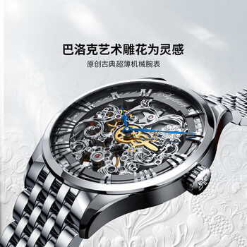 爱勒 AGELOCER原创巴洛克艺术雕花男士手表镂空机械表男款国表送男友生日礼物