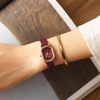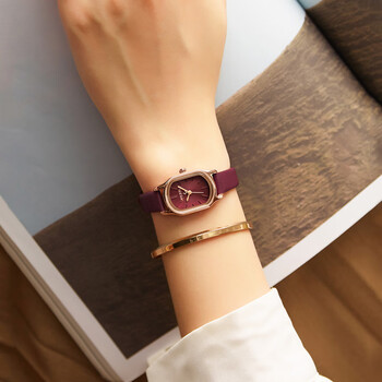 聚利时(Julius)手表女时尚潮流方形简约气质学生石英防水女士手表酒红色JA-1112D