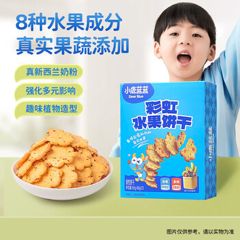 小鹿蓝蓝 彩虹饼干8种元气水果非油炸宝宝零食酥脆饼干儿童饼干零食80g