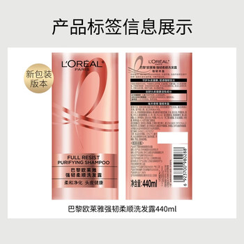 欧莱雅(LOREAL)强韧柔顺洗护发套装(洗440ml+护440ml)