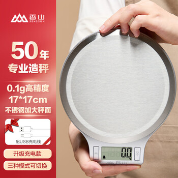 香山电子秤厨房秤烘焙秤咖啡秤 不锈钢大秤面 0.1g高精度 充电款