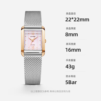 西铁城(CITIZEN)手表女日韩表L系列光动能方形盘钢带送女友礼物EW5596-66X