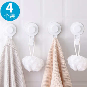 茶花挂钩贴 免打孔粘钩卫生间浴室衣服毛巾吸盘挂钩 4个装