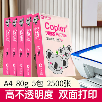亚太森博拷贝可乐(粉考拉) A4纸 80g 500张*5包 打印纸 复印纸草稿纸 2500张整箱【造纸源头厂牌】