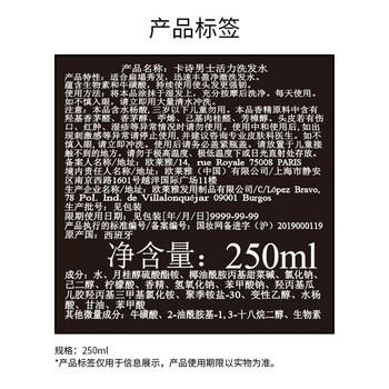 卡诗男士活力氨基酸洗发水250ml蓬松强韧滋润修护细软发