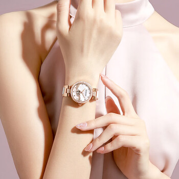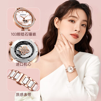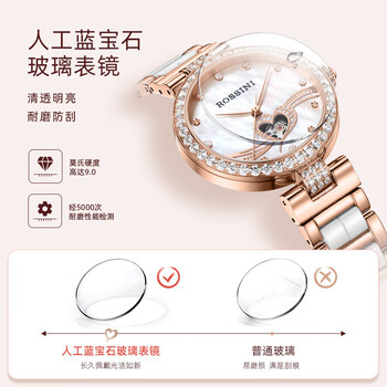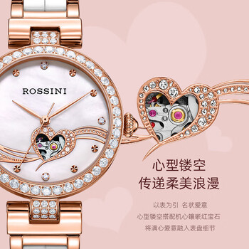 罗西尼(ROSSINI)女士手表 生日礼物心动镂空机械表贝母白盘陶瓷钢带518868