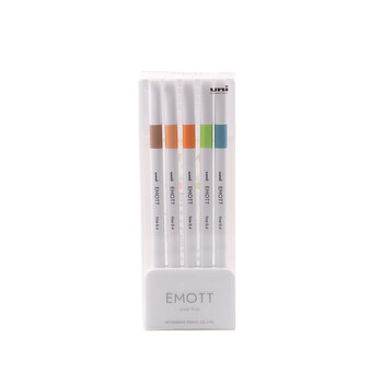 uni三菱 荧光记号笔 学生作业手账绘画标记笔彩色笔 彩色水性勾线笔 PEM-SY 自然色系 5色套装