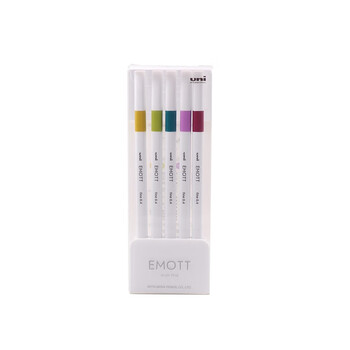 uni三菱 荧光记号笔 学生作业手账绘画标记笔彩色笔 彩色水性勾线笔 PEM-SY 怀旧色系 5色套装