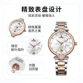 依波(EBOHR)手表女 蝶恋花爱丽丝生日节日礼物女士机械礼盒36080328