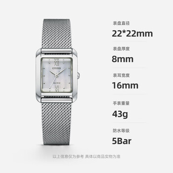 西铁城(CITIZEN)手表女日韩表L系列光动能方形盘钢带送女友礼物EW5590-62A